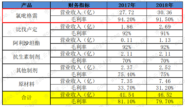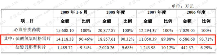 其中硫酸氢氯比雷格片(泰嘉)是心血管类药物的主打产品,占比超90%以上。