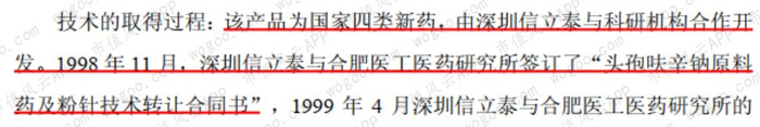 头孢呋辛钠技术是从合肥医工医药研究所买过来的,之后才共同开展二期临床。