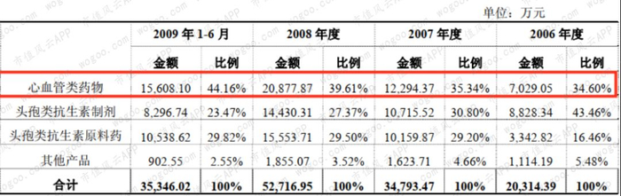 信立泰2009年9月于A股上市,上市前主要营收来自于心血管类药物和抗生素类药物,心血管类药物占到40%左右。