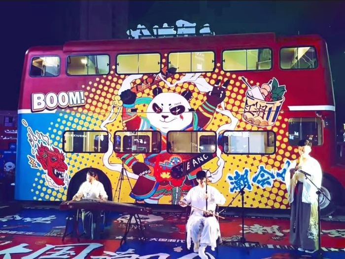 这样一台国潮巴士就是街区的专属舞台,一分钟搭台,随时可以开始你的表演!