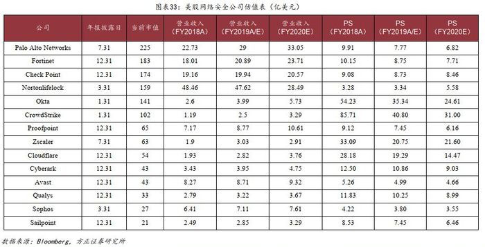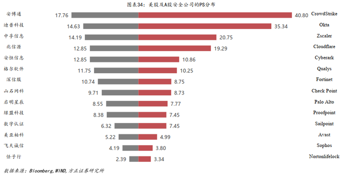 4、估值方法探讨:美股及A股网络安全标的适用估值方法探讨,国内网安公司是否适用于PS指标来对其进行估值。