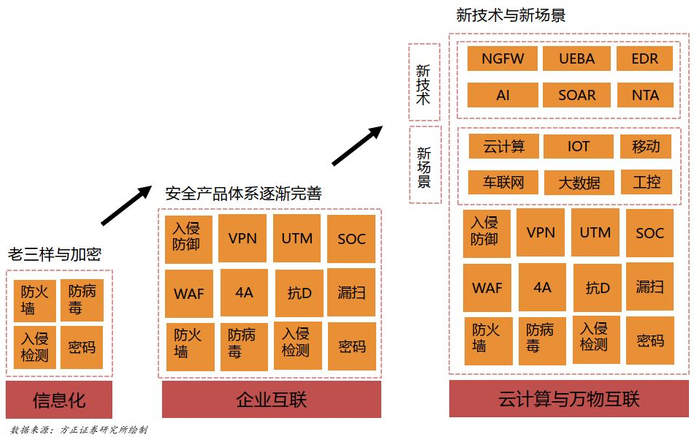 产业发展阶段:从“老三样”到网络空间安全