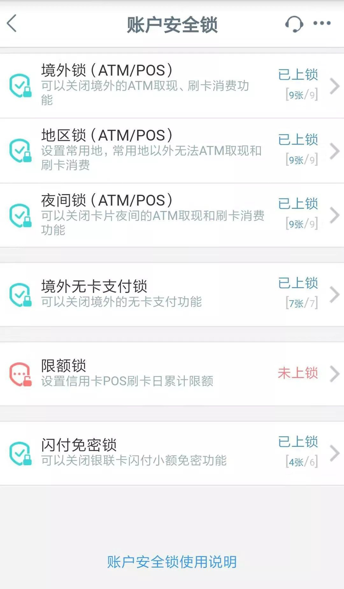 境外无卡支付锁是用来控制境外无卡消费和预授权交易的。上锁后禁止以上交易。