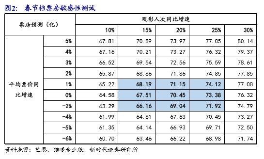 敏感性分析:结合以上假设,我们预计春节档票房在60-80亿元,中性情况下70亿元左右,如下表所示。