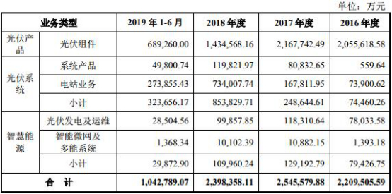 报告期内,天合光能光伏组件占主营业务收入的比例分别为93.04%、85.16%、59.81%及66.10%;电站销售收入分别为7.39亿元、16.78亿元、73.40亿元及27.39亿元。该公司解释称,其中2018年公司电站销售收入占主营业务收入的比例较往年增幅较大,原因为公司在2018年出售了约938MW的国内电站。