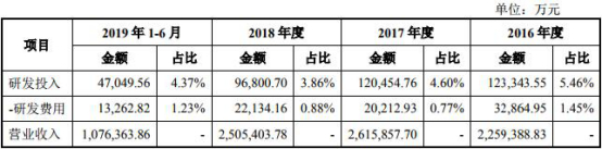 天合光能还称,“为了持续提高公司产品的技术含量和品牌优势,公司始终高度重视研发投入”。 而事实上,过去三年,该公司研发费用率呈下滑趋势,2017年和2018年研发费用率甚至不足1%。