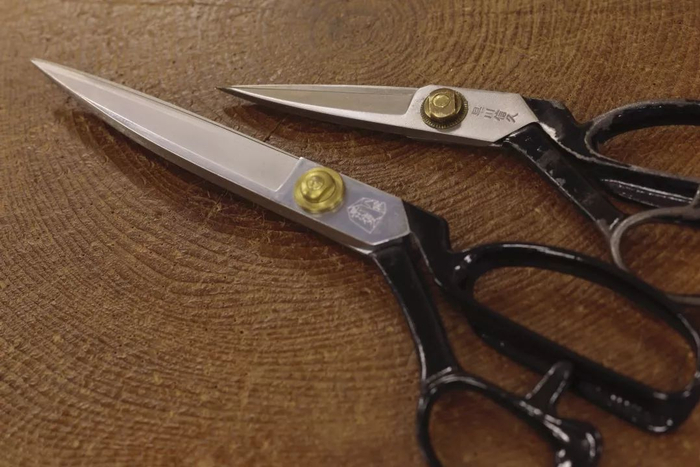 △ 职人们使用的剪刀,小剪刀是大剪刀经年累月使用后磨成的样子。图片来源 | 一泽信三郎帆布