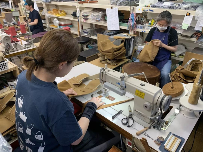 一泽信三郎帆布包括职人在内,整间公司大概有 70 个人,职人们也并非计件计酬,而是采用固定工资制度。缝纫职人与负责缝纫商标、五金的搭档助理两人一组,共同负责帆布包的制作。如果是比较简单的结构的帆布包,这一组职人一天大概可以制作 20 个。职人们从搭档助理做起到踩上缝纫机板,一般要花费七八年时间。