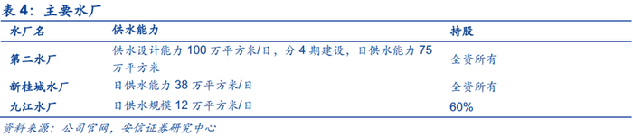 公司2018年关停樵南水务官山水厂,供水设计能力下降至125万立方米/日,分别为南海第二水产75万立方米/日、桂城水厂38立方米/日和九江水厂12万立方米/日。在建南海水厂四期项目,产能25万立方米/日,预计于2020年初投产,投产后公司供水设计产能150万立方米/日。