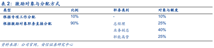 逐步打造职业经理人制度,长短期激励促管理层干劲。公司高级管理人员薪酬激励由短期激励及长期激励构成,短期激励包括基础工资和绩效年薪,长期激励采用虚拟股权单位形式。绩效年薪的绩效设定与当年的财务指标和非财务指标的绩效考核指标有关,高管的实际绩效年薪与年报披露后个人绩效考核结果挂钩。一旦公司发生年度亏损,高管的绩效年薪为0,并按照基础年薪的30%承担惩罚金额。长期激励为公司向高管人员授予与公司真实股权对应的虚拟股权单位,含股价增值权和分红收益。公司长期激励计划分为三期,公司设定长期激励的公司业绩条件,合计金额为公司对应总股本的0.5%,市场价值约为0.68亿元,分三年实施。