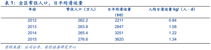 根据公司公告,公司预测2020年南海区垃圾日平均产量将超过4500t/d,日平均清运量将超过4000t/d。远期随着垃圾分类收集率的提高,逐渐抵消经济发展带来的垃圾增量,日平均清运量将逐渐稳定在4500t/d左右。