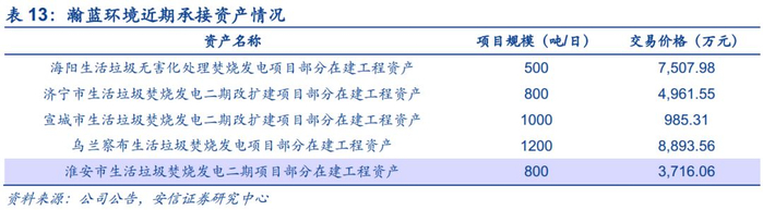收购盛运环保项目,积极融资加速产能扩张。公司2019年6月与盛运环保签订合作协议,拟收购盛运环保海阳项目(500吨/日)、济宁二期项目(800吨/日)、宣城二期项目(1000吨/日)以及乌兰察布项目(1200吨/日)部分在建工程资产,此后公司拟收购淮安中科环保淮安市生活垃圾焚烧发电二期项目(800吨/日),合计在建产能共4300吨/日,交易价格2.61亿元。鉴于以上项目多为在建工程,其建成投产后将进一步增大公司产能。