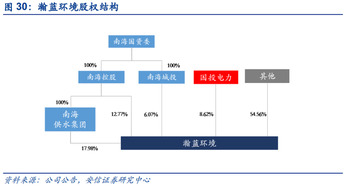国资入股助力固废扩张。公司目前实控人系南海国资委,其通过南海供水集团、南海控股投资和南海城建投资三家公司间接持有公司股份36.82%。公司大部分业务,尤其是水务与燃气业务的主要项目均位于佛山市南海区,南海国资委为其背书使得公司在南海地区的区位优势更加明显。2018年4月18日,公司引入国投电力,目前为公司的第三大股东,国投电力背靠国家开发投资集团,其战略参股对公司“大固废”版图的全国性扩张具有重大意义。