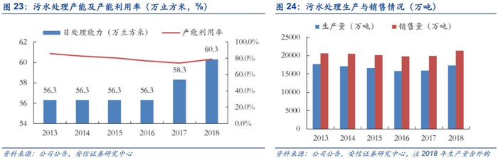 2013-2018年公司供水产量和销量保持平稳上升,且供水产能利用率均高于80%。2018年,公司供水产能利用率上升至94.48%。
