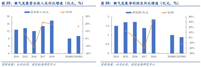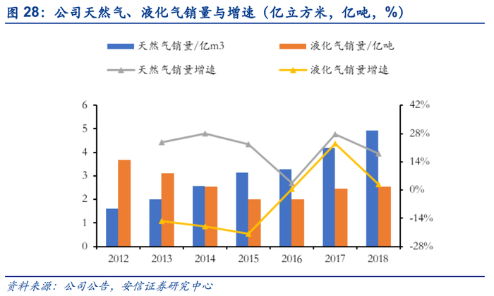 工业煤改气推动公司燃气销量稳增长。2018年佛山市已对陶瓷、玻璃、铝型材行业展开第二轮提标改造,全市58家陶瓷企业已全部完成脱销深化治理,157家铝型材企业已完成清洁能源全替代。燃气发展抓住政府推行清洁能源政策的机会,积极开展铝型材企业、高污染燃料禁燃区企业天然气转换工作,重点拓展南海区内陶瓷行业用户,取得良好成效。受益煤改气力度的不断加强,公司天然气销量近年来持续增长,2018年天然气销量4.93亿立方米,同比增长18%;液化气近两年销量增速反弹,2018年销量2.54万吨,同比增长2.83%。