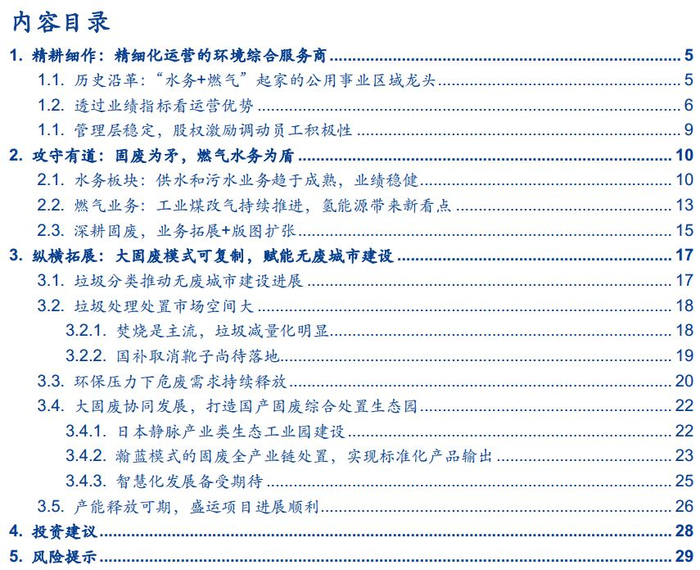 ■公用事业起家,精耕细作打造区域龙头。公司成立初期以贸易为主,通过受让南海发展股份,业务转变为经营自来水、供应。后逐步通过并购扩张,实现业务覆盖水务、燃气、固废处理为主的环保综合服务商。公司的净利润保持较好增长水平,在对外收购扩张的同时,维持毛利率水平基本维持,期间费用管控良好。公司以运营优势见长,尤其在固废垃圾发电项目上,ROE、吨上网电量、经营性现金流等关键指标上保持行业领先,管理层的长期稳定经营保证了公司战略的贯彻始终。在此之上背靠佛山大本营,人口密度和经济发展优势成为公司业绩增长的基石。期待公司在拓展危废、并购盛运项目等发展过程中进一步发挥精细化运作能力,助力公司业绩再次腾飞。