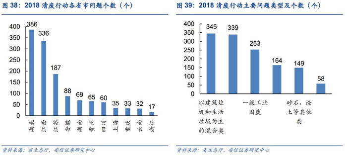 清废行动取得一定积极进展,也将持续推进。“清废行动2018”共排查发现长江经济带11省(市)78个地级市问题点位1308个,截至2019年1月31日,除4个问题因工程量较大正在整改外,1304个问题点位已完成整改,整改完成率99.7%。对368个涉及环境违法问题立案查处,移送行政拘留16人,移送公安机关追究刑事责任24人,对1507名责任人实施了问责。累计投入19.61亿元,清理各类固体废物3801.25万吨,新建规范化垃圾填埋场69个。2019年4月,生态环境部在长江经济带11省(市)所辖126个城市以及仙桃、天门、潜江3个湖北省直管县级市,吹响了“清废行动2019”号角。