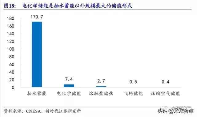 电化学储能近年来发展迅速,整体占比仍然较低。据中关村储能产业技术联盟 (CNESA)统计,截至 2018 年底,全球累计已投运储能项目 181GW,同比增长 3.19%,其中电化学储能累计装机 6.625GW,同比增长 126.4%,截至 2018 年底电 化学储能占全部储能累计装机的 3.7%,是抽水蓄能以外累计装机规模最大的技术 路线。