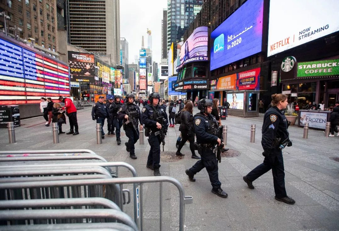 1月6日,警察在美国纽约时报广场执勤。伊朗伊斯兰革命卫队下属“圣城旅”指挥官苏莱曼尼3日在伊拉克首都巴格达遭美军袭击身亡后,美国纽约市宣布在重要场所加强警戒