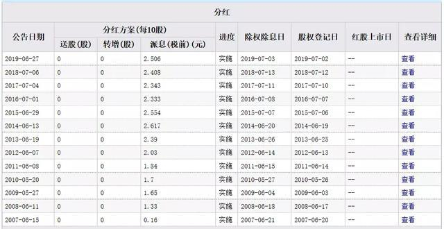 它每年都有现金分红,而且每股分红的金额是逐年上升的。