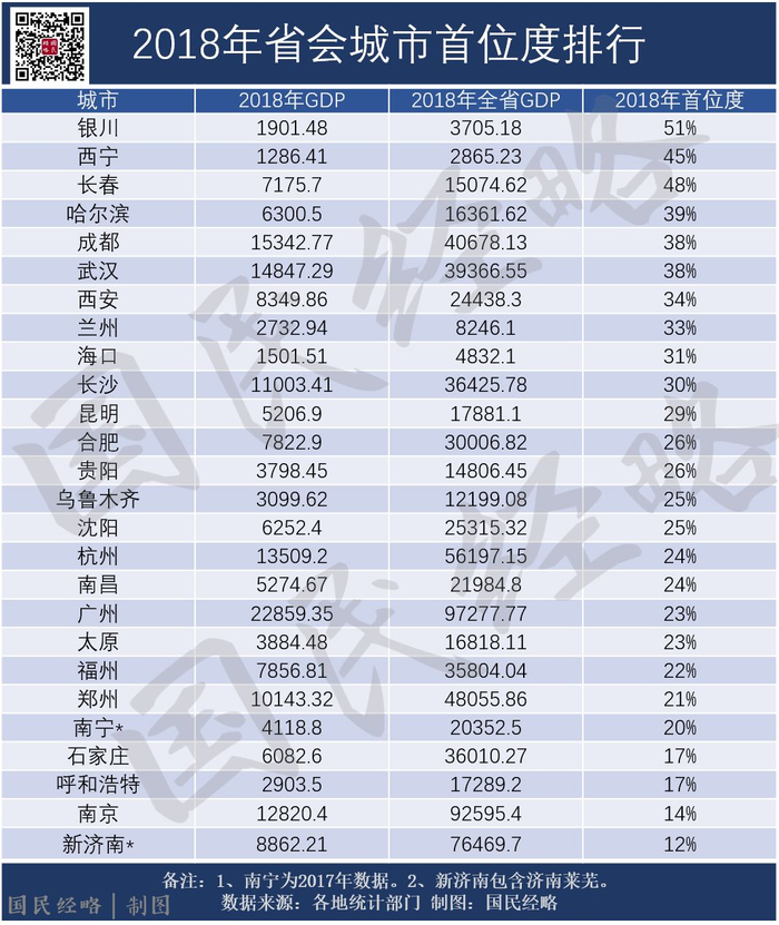 不过,随着中国进入强省会时代,济南、南京的首位度未来将得到提升。