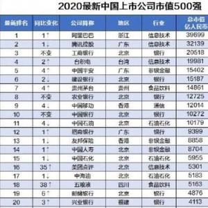 原标题:中国上市公司市值500强榜单 海康领先百度!(附榜单)