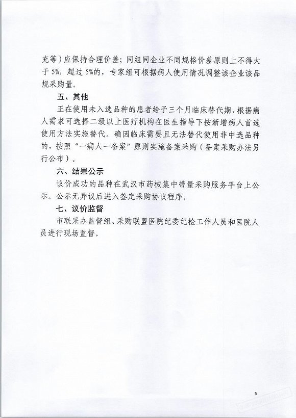 此次约定采购量约为170.6万支,上述企业将被分为七组进行议价谈判。议价规则上,同组同企业产品只有一个规格的,报价低于全国省级挂网最低价(简称全国最低价,不含福建、广东、重庆,截止2019年12月1日,下同)5%时,以该产品2018年武汉地区采购量的70%为约定采购量;报价低于全国最低价10%时,以该产品2018年武汉地区采购量的90%为约定采购量。