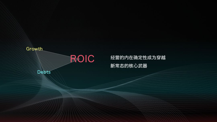 所以,我们只能向内去寻找经营的确定性,这个确定性的主要表达就是ROIC——投入资本回报率,也就是按你所有的本金和借款计算的回报率,而不是杠杆后的回报率,这就是我们更强调ROIC而不是ROE的原因。未来,我们必须追求在合理增速和负债下的优秀ROIC表现,只有这样,我们才有足够的武器和信心,穿越新常态。
