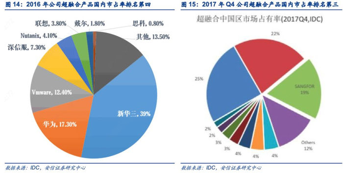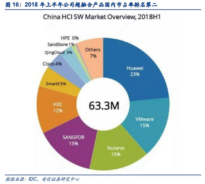 超融合推动公司开启新一轮高增长。根据Gartner的数据,公司超融合架构产品2018年上半年国内市占率仅次于华为,排名第二。Gartner预计2017-2022年全球超融合市场复合增长率为40.4%,中国市场的增速将超过全球。公司作为超融合领先企业,有望充分受益。