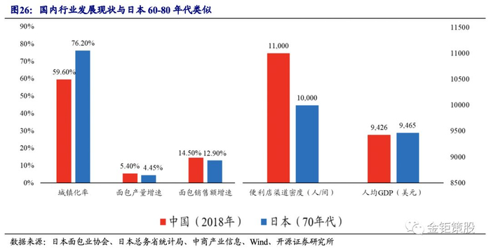 我们认为,当下中国烘焙食品行业发展现状及零售环境和日本60-80年代类似:零售环境看均处于便利店渠道快速发展期,宏观经济环境均处于经济和居民收入的快速增长期,行业同样都处于量价齐升的成长期。