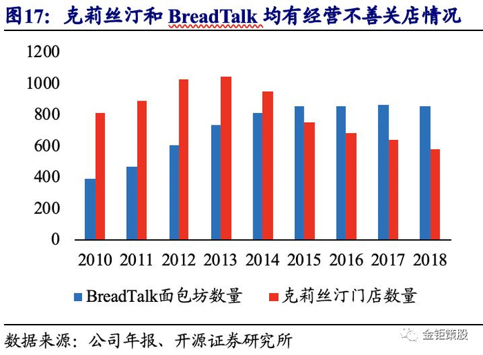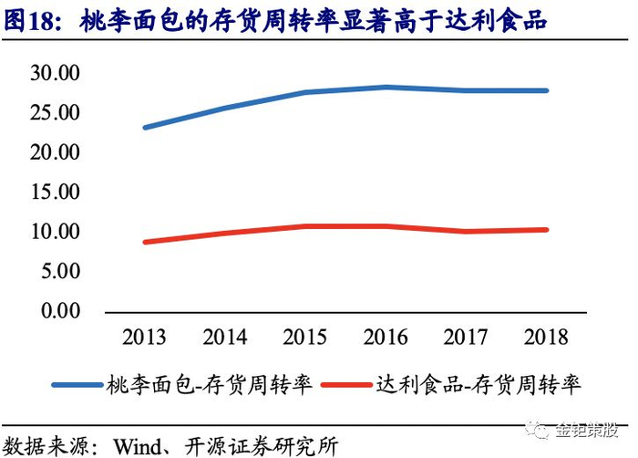 短保烘焙“中央工厂+批发”模式更优,渠道高周转是王道,核心在于线下渠道布局和供应链保障能力。短保烘焙产品一般存在连锁面包坊和“中央工厂+批发”两种模式。连锁面包坊消费体验更佳,但由于门店租金和人工成本的持续上涨,同时国内面包单价和消费频次相对较低,坪效和ROE相对较低,对加盟商吸引力不足,更多通过品牌直营店的模式扩张。目前国内面包等烘焙产品仍旧处于量增为主的发展阶段,性价比是消费者更加关注的因素,更加注重品质和体验的品牌直营门店模式在快速扩张之后也已面临经营压力。以克莉丝汀和BreadTalk为例,克莉丝汀早在2012年收入达到巅峰的13.91亿元后就开始持续下滑,2018年收入仅6.65亿元,不到巅峰时期的一半。BreadTalk烘焙产品收入同样在2015年达到顶峰的3.08亿美元之后持续下滑,2018年收入为2.82亿美元。伴随着收入下滑的同时是门店经营压力增大,亏损甚至关店,克莉丝汀门店数量已经由2013年底巅峰的1052家减少了到2018年底的586家,BreadTalk近年来也开始关闭部分经营不善的门店,2018年底面包坊数量为863家,较2017年底减少了8家。另一方面,以桃李面包为代表的更注重产品性价比的“中央工厂+批发”模式则保持了持续快速的发展,持续抢占面包坊的市场份额。短保烘焙产品“中央工厂+批发”模式下对供应链的要求极高。短保产品保质期在15天以内,在这一段时间内要实现从中央工厂生产到配送至各站点,然后以各站点为中心辐射运送到当地的便利店和KA门店,便利店和KA门店快速上架销售,消费者到店购买消费,同时门店将销售情况和订单反馈到中央工厂这一全过程。并且为了保证产品的新鲜度以及早餐的消费需求,一般从中央工厂生产到门店上架需要在几小时内完成,而且一般需要在早餐之前完成渠道的送货和产品上架。短中保产品的生产成本与长保产品差异不大,主要的差异在于快速周转的物流成本以及产品的报损成本。高的周转率说明产品动销快,品牌力和复购率的提升,报损费用的下降则会大幅提升盈利能力。高的渠道周转率需要高质量的供应链能力来保障,以实现既不缺货又不过期,保障销售的同时提升净利率。经过多年的经营调整,短保龙头桃李面包的退货率实现了7%左右的较低水平,持续低于行业平均的12%-15%,进而使得公司过期报损的费用大幅降低,在实现高周转的同时保证利润率。短保产品对线下门店终端的要求高,且线下渠道布局完善后才能形成较好的品牌集聚效应,加快动销。因此,实现渠道高周转的核心在于完善的线下渠道布局和供应链的保障能力,可以看到短保龙头桃李面包的存货周转率是长保龙头达利食品的近三倍。短保龙头桃李面包通过灵活的订单管理模式、高效的物流运输体系、因地制宜的货款结算方式以及严苛的库存管理制度所形成强大的供应链管控能力,已经成为公司在短保领域的重要护城河。