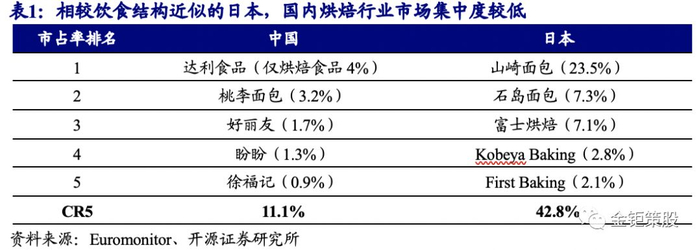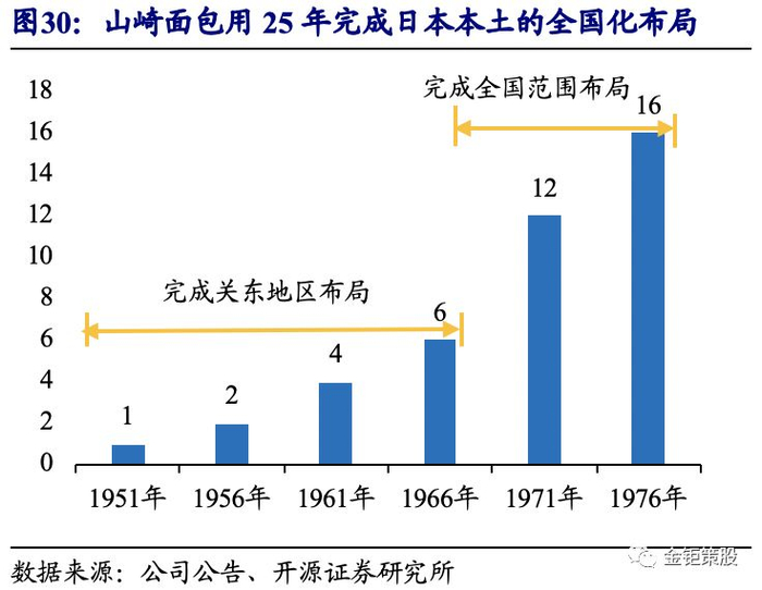 国内烘焙行业类似日本60-80年代量价齐升的成长期。彼时日本山崎面包通过“中央工厂+批发”的模式推出高性价比的产品完成了日本本土的全国化扩张。其后在国内行业饱和后通过“中央工厂+门店”的模式提升消费体验同时拓展海外市场,保持持续增长。成熟期后通过并购和新品类拓展优化产品结果提升毛利率。国内短保烘焙龙头桃李面包同样正在通过“中央工厂+批发”的模式在全国范围内扩张,未来有望复刻日本山崎面包的成功之路。