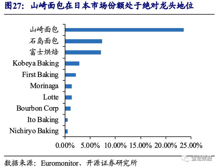 日本烘焙龙头山崎面包70余载的发展历程,公司实现了从“中央工厂+批发”到“中央工厂+门店”的发展模式升级,也映射出了日本烘焙行业的消费升级之路。1948年6月,创始人饭岛十郎在日本成立山崎面包有限公司,注册资金100万日元。时至2018年,山崎面包营业收入已超过1.06万亿日元,占日本烘焙食品行业市场份额23.5%,成为了行业绝对的龙头,第二名的石岛烘焙市场份额仅7.3%。