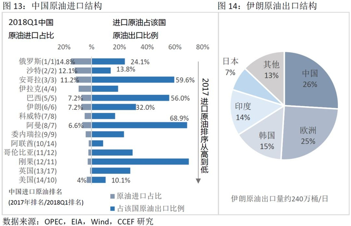 3. 美伊风波对中国石油进口影响有限伊朗原油出口量大约日均240万桶,其中26%销往中国,大约62万桶左右。而中国对伊朗原油进口依赖度不高,占7%左右,伊朗局势的变化对中国原油进口以及石油供给的影响有限。