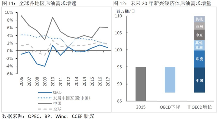 2、石油需求量不断下降的趋势,也会造成地缘政治事件对石油价格的冲击性下降未来10年,不仅发达国家原油需求下降的趋势将延续,随着中国等新兴经济体经济增速的逐步放缓,其经济发展对原油需求的增长也在趋缓。专业机构预测,2025、2035年全球原油需求分别为1.05、1.1亿桶每日,这意味着未来十年原油需求年增长率将下降至1%(未考虑新能源汽车对燃油汽车的替代效应)以下,全球原油需求进入增速下行时代。需求疲软叠加供给多元化,将使得地缘冲突对国际油价的冲击性不断下降。