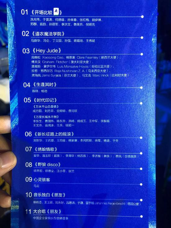 大家看到上面节目单了吗?马云今年的节目叫《心灵骇客》,大家觉得是个什么类型的节目?大家可以在下方留言!