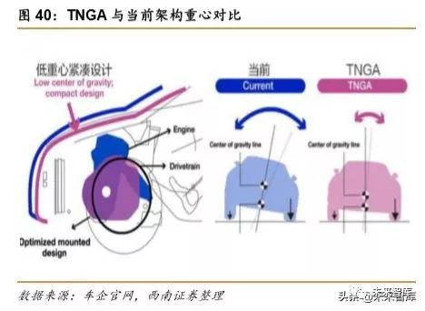 TNGA( Toyota New Global Architecture )架构包括汽车研发、设计、生产、采购等 整个汽车产业链,是 TPS 精益生产系统的一次进化。拥有更精益化的生产模式、通用化的 生产平台等优势。TNGA 完全改造动力总成单元(发动机、变速器、HEV 单元)和基本框架 (底盘)。