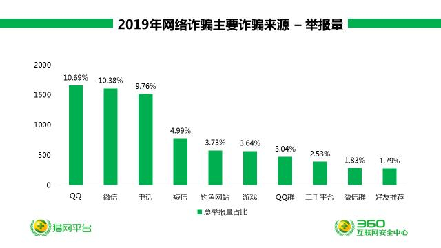 1月7日,360企业安全集团、360猎网平台发布《2019年网络诈骗趋势研究报告》(以下简称报告)。据悉,在报告中,360安全大脑基于360猎网平台2019年收到的近两万条有效诈骗举报,从网络诈骗大数据趋势、受害者画像、网络诈骗典型案例等维度,揭示了网络诈骗的现状及趋势,并对金融诈骗、交友诈骗、兼职诈骗等2019年典型网络诈骗做了深入分析,总结出2019年网络诈骗六大变种、十大话术和五大防范锦囊。