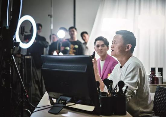 2018 年11月10日,2018天猫“ 双十一”晚会上,马云(右)挑战了淘宝直播“口红一哥”李佳琦。图/中新