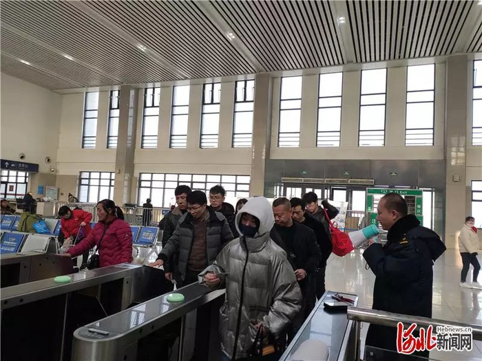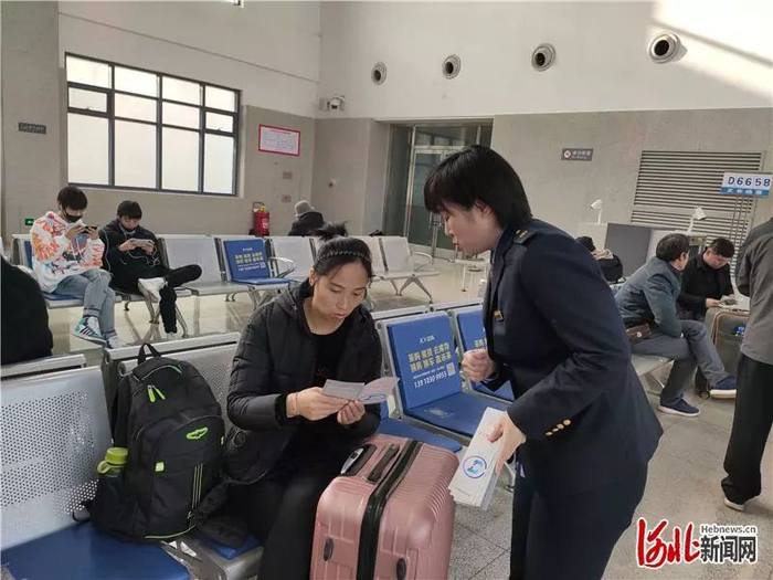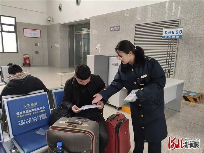 雄安新区白沟站工作人员在车站现场向旅客宣传电子客票知识。通讯员王永摄