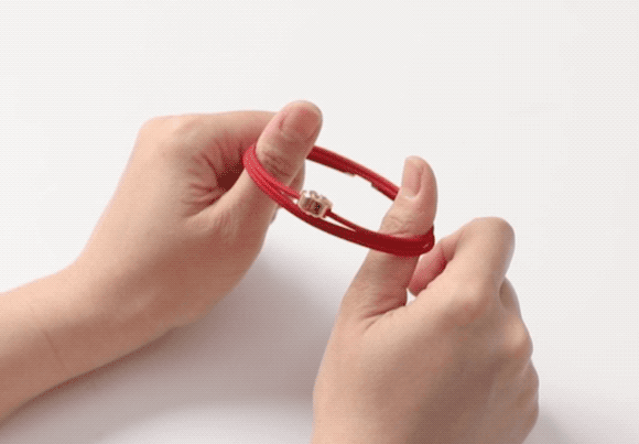 还有多种戴法,除了作为手绳,还能作为项圈戴在脖子上。