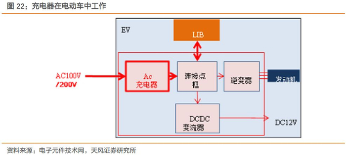 汽车上传统负载,如空调、雨刮器等,采用12V电压,而电池输出为48V甚至更高的电压,需要大量的电压转化模块(DC-DC)模块进行电压转换。这其中就用到了更多的功率半导体和被动器件(变压器等)。