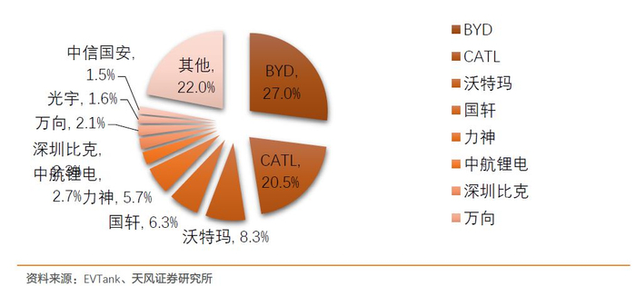 1)动力电池企业:目前国内第一梯队动力电池企业均涉足,且大多是“BMS+PACK”模式,掌握了动力电池电芯到电池包的整套核心技术,具有较强的竞争实力。代表企业有BYD、(宁德)CATL、中航锂电、国轩高科等。