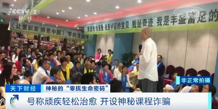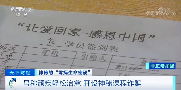 日前,记者接到群众反映,称最近在浙江温州瑞安出现了一种全新生命疗养课程,叫做“零抚生命密码”。这个课程声称通过全新的心灵自然疗法,突破了现代医学限制,无需仪器,无需药物配合,就能轻松治愈包括肿瘤在内的任何顽疾。