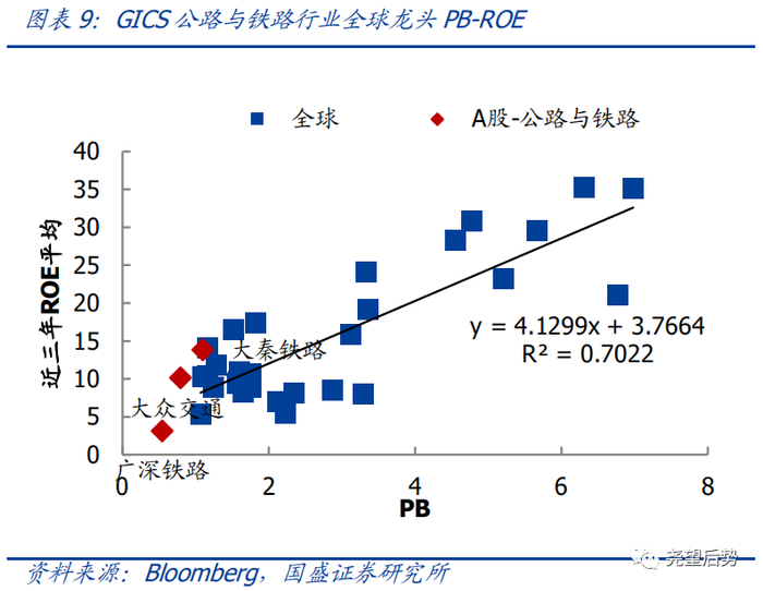公路与铁路:部分公路与铁路龙头被低估,大秦铁路估值吸引力较强。A 股公路与铁路龙头估值偏低,部分龙头估值与盈利匹配度吸引力强。偏离度从高到低:大秦铁路、大众交通、广深铁路偏离度为 1.3、0.7、-0.7。