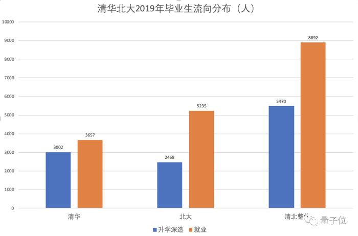 北大方面,全校毕业生中有31.61%继续深造,比2018年的35.32%略有下降。