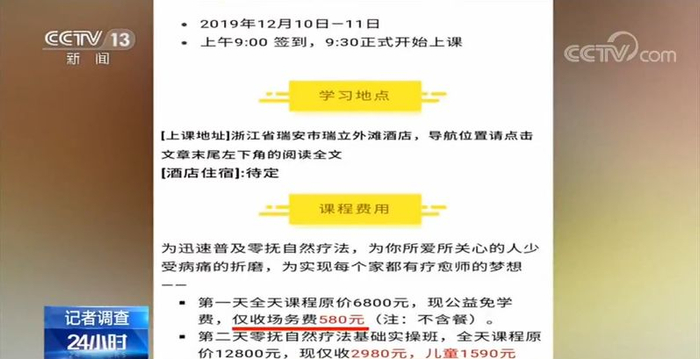 浙江瑞安 陈女士:她说她可以帮我们隔空治疗,在外地工作,家里有老人有什么毛病,可以用心灵去感应他。冥想、互相拥抱 课程内容竟是这些