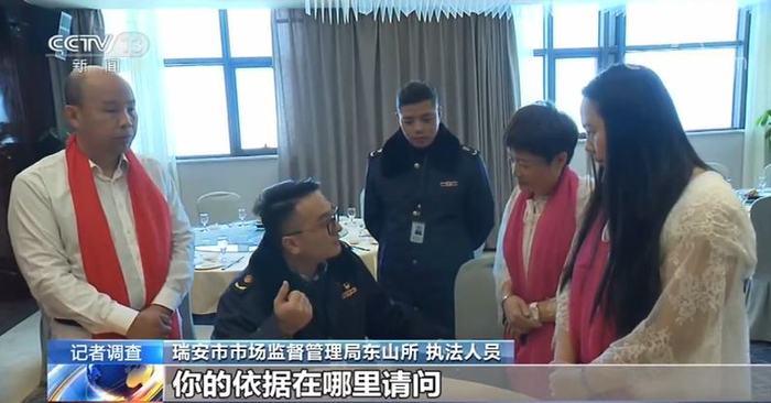 记者随后向瑞安市市场监督管理局东山所进行举报,执法人员赶到现场,对涉事人员做了谈话笔录。