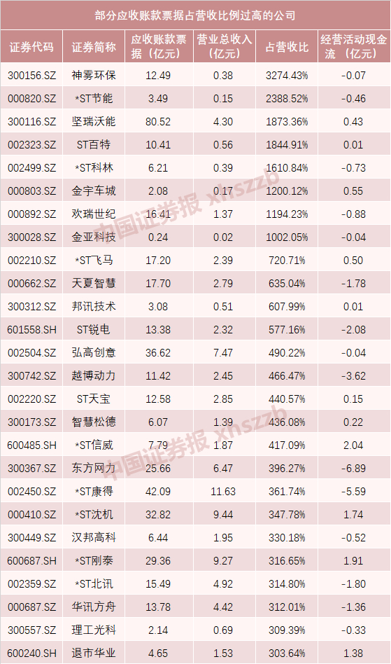 其中,神雾环保、*ST节能、坚瑞沃能、ST百特、*ST科林、金宇车城、欢瑞世纪、金亚科技等8家公司的占比超过了10倍。