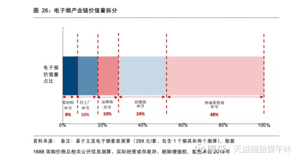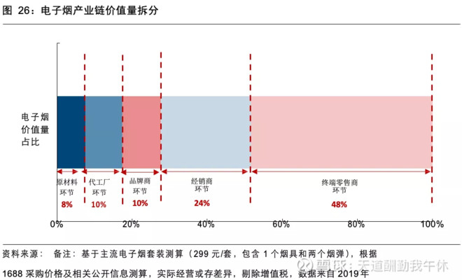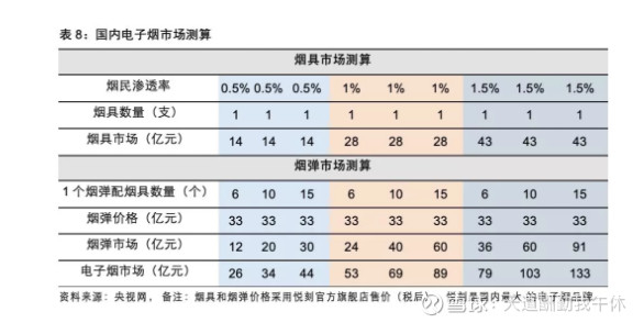 b.电子烟毛利很高,目前新事物推广给了中下游代理商和零售商很大利润空间。如果未来专卖,可参考普通烟草10%左右的零售毛利。中间商利润可以完全给国家税收。